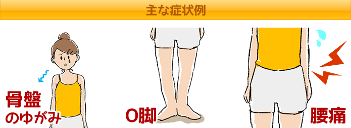 猫背、腰痛、産後の骨盤のゆがみ、O脚、X脚、生理痛など多くの症状に効き目がございます。